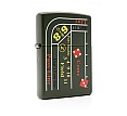 Unieke Zippo met gedetailleerd casino tafelmotief op een matte groene basis