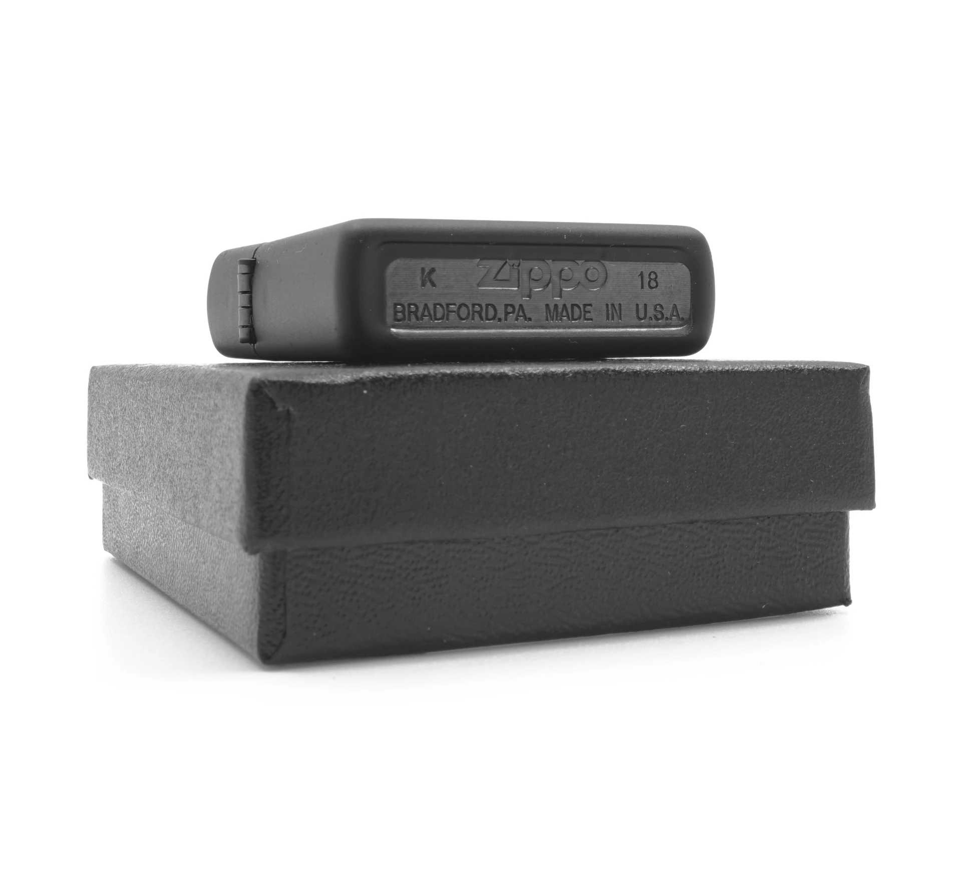 Ontdek de matte zwarte Zippo met een unieke kruiswoordpuzzelprint.