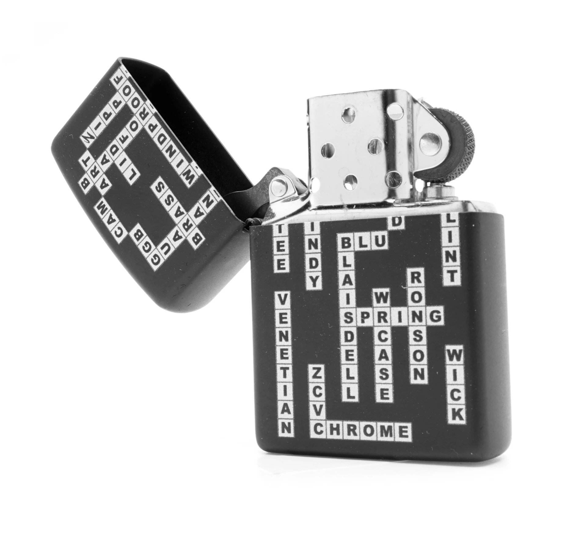 | Motief | Een zwarte Zippo aansteker met daarop een kruiswoordpuzzel in een witte kleur en ergens in de worden zit een verborgen Z logo van Zippo. |
