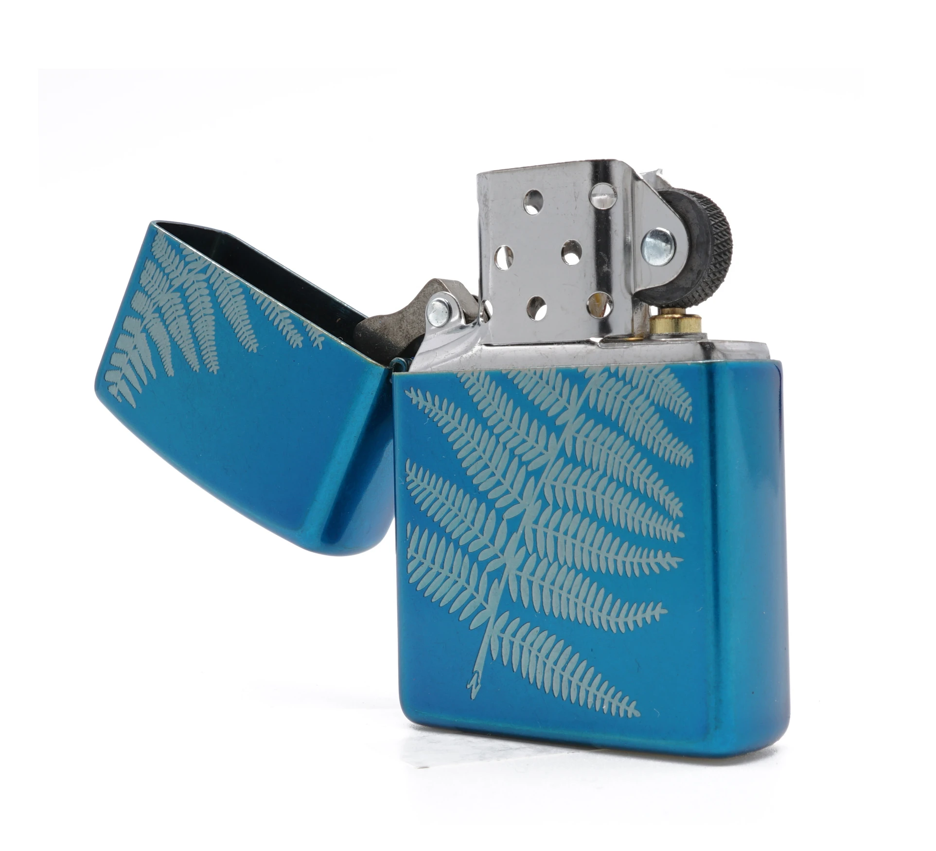 Bekijk deze unieke blauwe Zippo met een prachtig gravureblad.