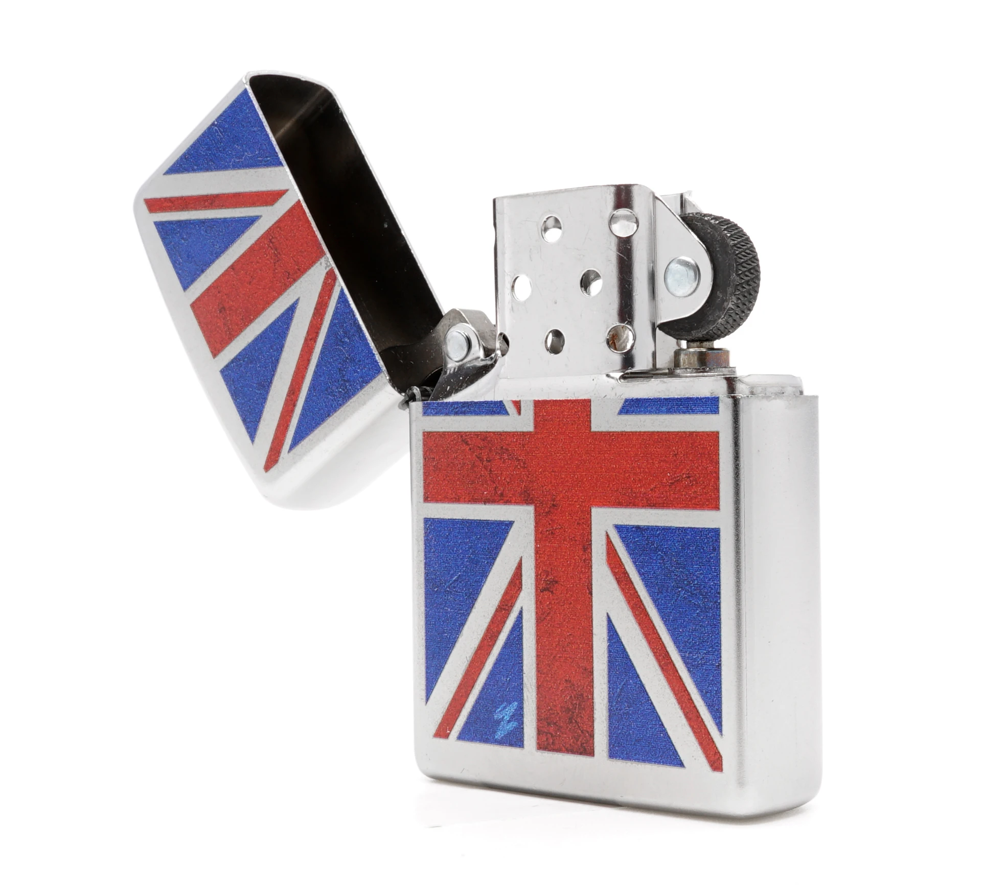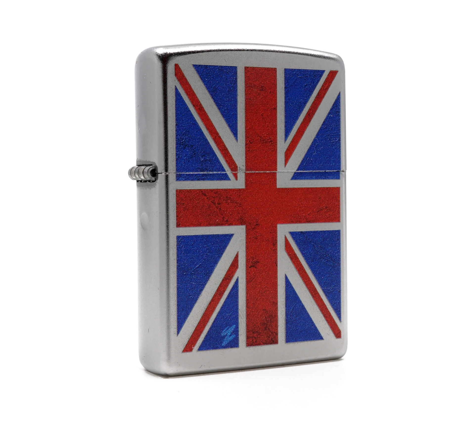 | Motief | Een Engelse vlag op een satin chromen Zippo. De blauwe en rode kleuren komen prachtig naar voren en geven deze Zippo een goede indruk. |
