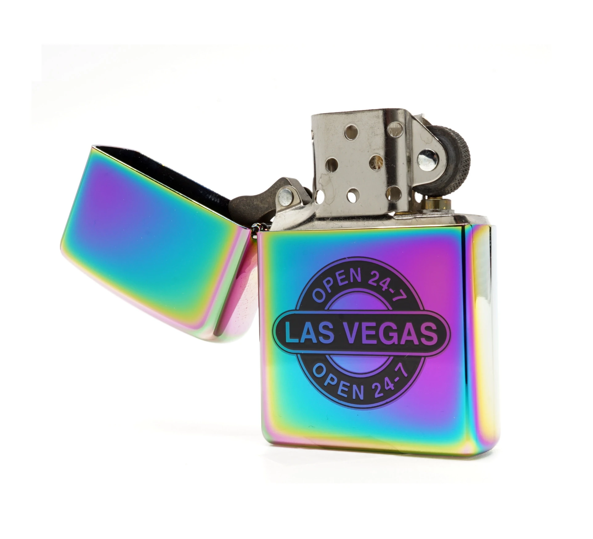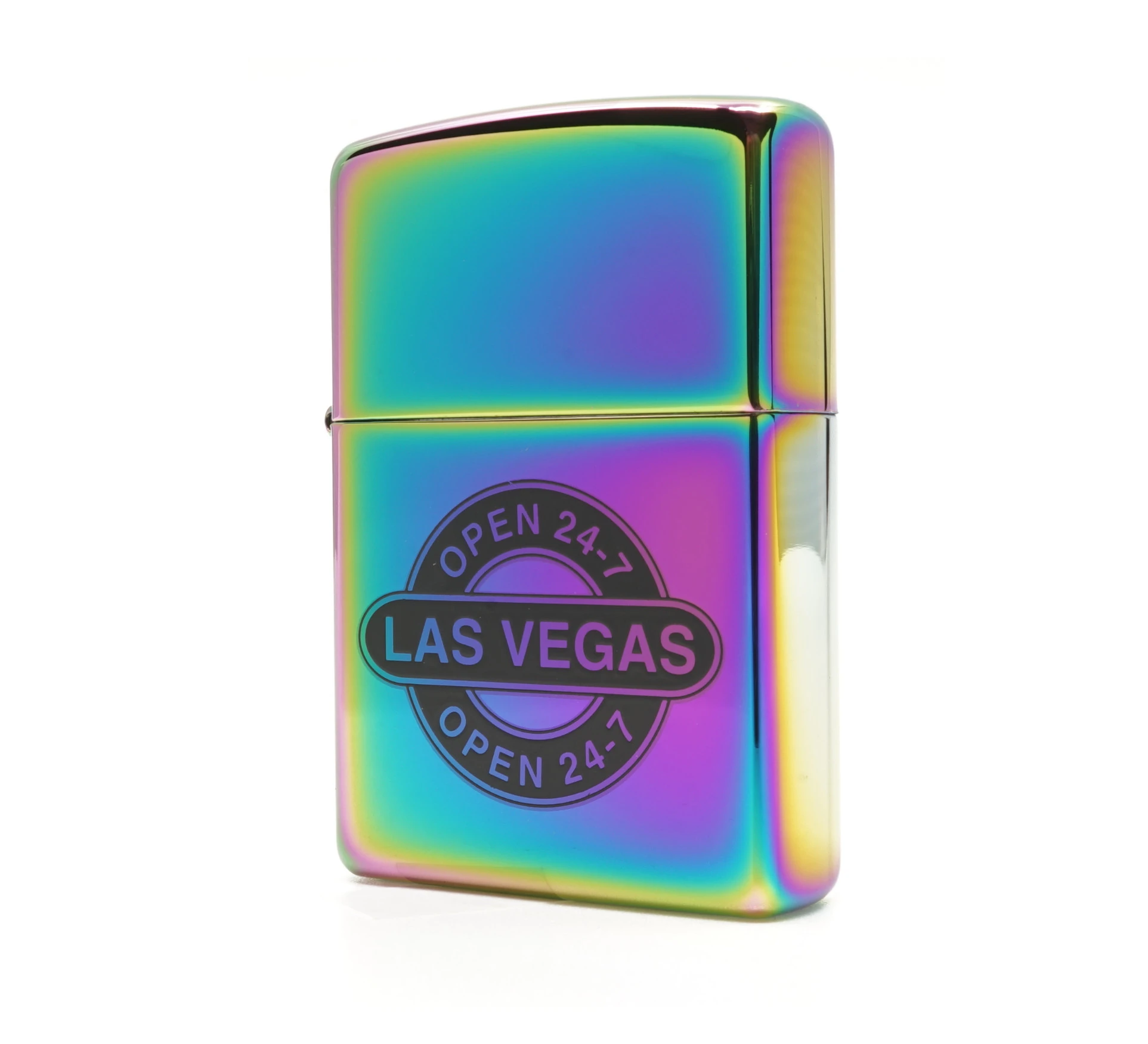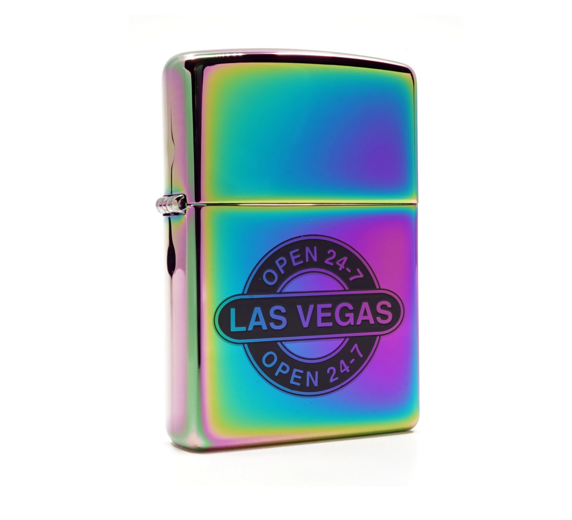 | Motief | Een prachtige Zippo Spectrum met daarop de tekst 'Open 24-7, Las Vegas' in het zwart. Gemaakt in 2005 en erg moeilijk te verkrijgen. |