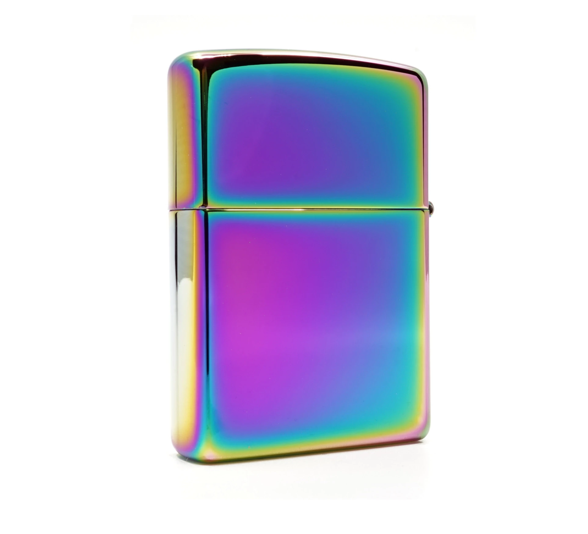 Zippo met opvallende spectrumkleurige gepolijste afwerking.